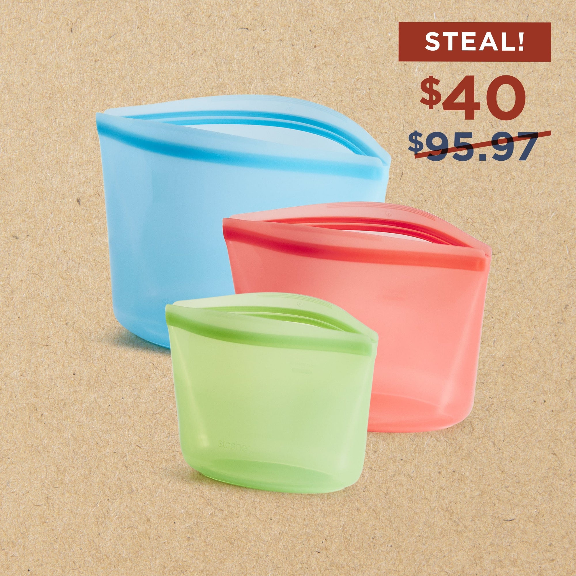 This 3-pack is a great way to stock up on bowls for all your kitchen needs. And here’s the kicker: this bundle is 40% off during our warehouse sale! At Stasher, dreams really do come true. These versatile bowls are perfect from home to hangout, for work or the weekends. With a flat bottom and a seal that stays open on its own, you can lunch prep in one easy step.