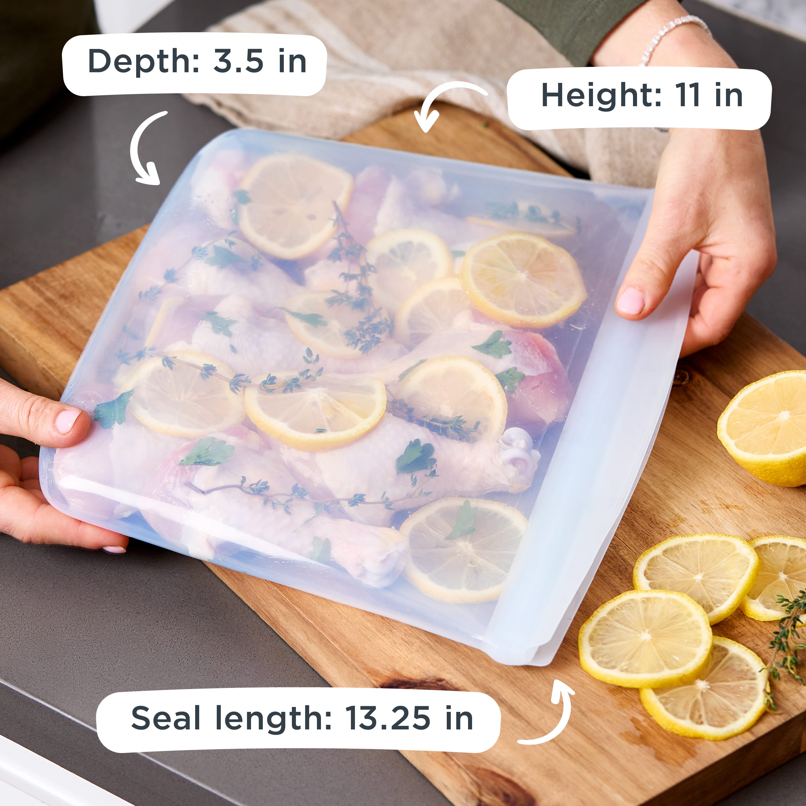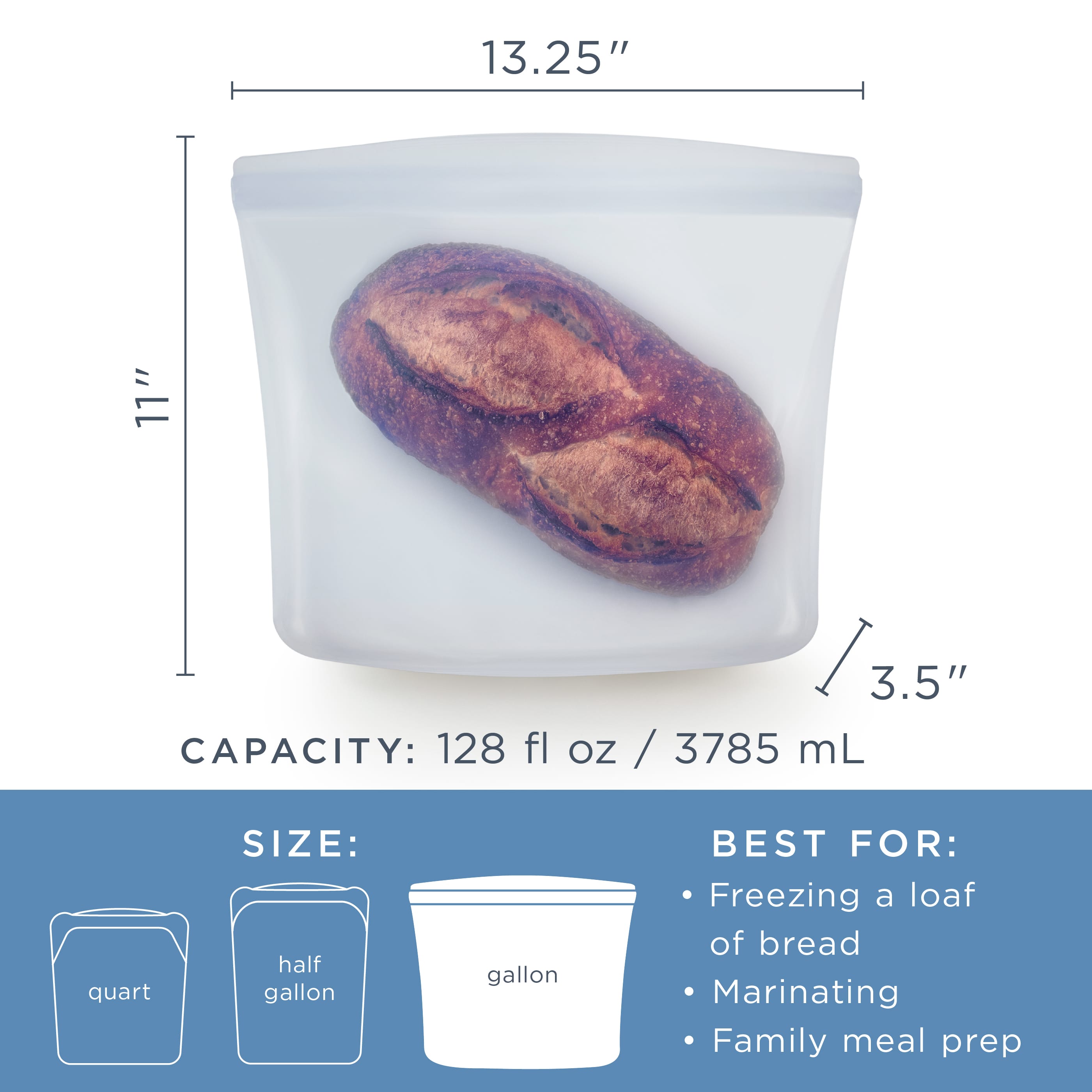 Customers say this gallon-sized bag is versatile and spacious, perfect for storing large batches of food. Many reviews mention using it for bread storage, meal prep, and freezing portions. The bag handles various tasks from marinating meats to storing vegetables. While most appreciate its durability and seal quality, some note it's bulkier than expected and doesn't stand upright. Users particularly value its capacity for storing homemade baked goods and leftovers. Common feedback includes praise for the roomy design, though a few mention the price point is high.