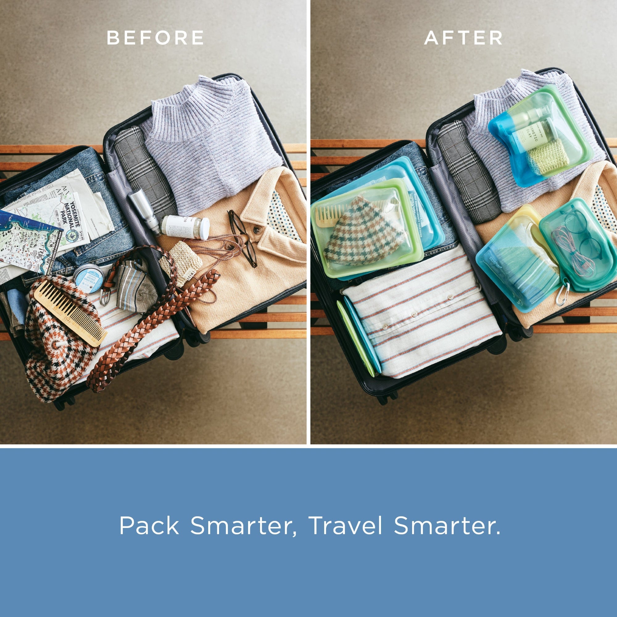 Embark on your next adventure with purpose and unparalleled organization. Introducing the Stasher Travel Bundle – your ultimate companion for better-for-the-planet journeys. This thoughtfully curated collection transforms how you pack, as your Stasher bags keep essentials secure, organized, and entirely reusable, so you can explore more and make smarter choices.
